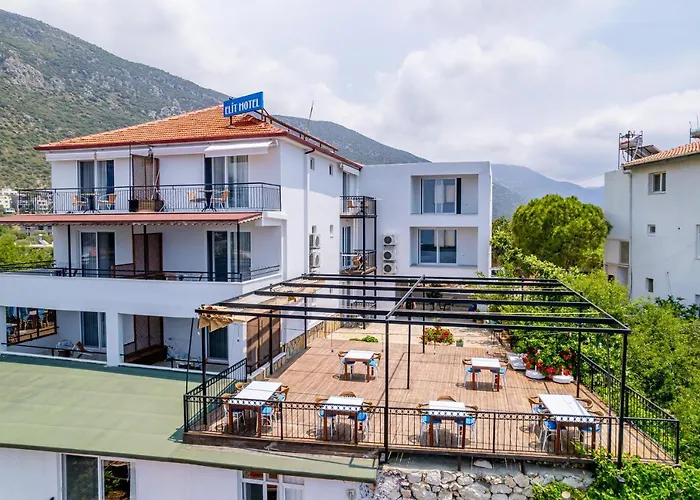 A hotel csendes helyen, a Kas Belediyesi Halk Plajı területétől kocsival 10 percre található. Az Akca Germe Plaji tengerpart 25 perc alatt elérhető gyalogosan. A szállástól jobbra van a Gokseki Quarter. Az Elit Hotel Kas 150 km-re fekszik a Dalaman (DLM-Dalaman nemzetkozi ) repülőtértől.